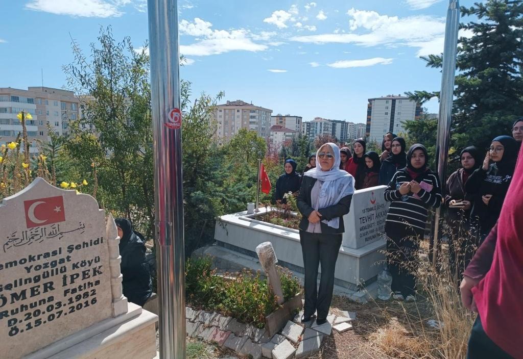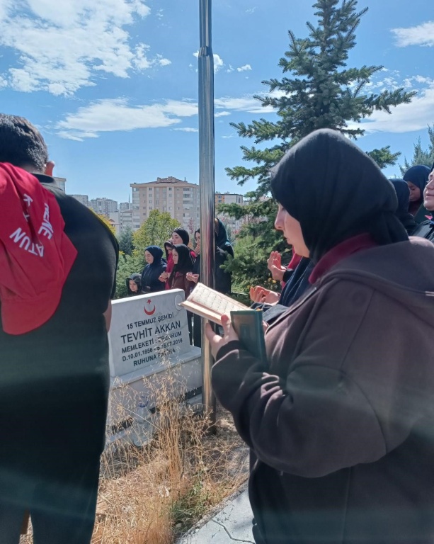 Nene Hatun Kız Anadolu İmam Hatip Lisesi öğrencileri, 15 Temmuz şehidi Ömer İPEK'in annesi, ablası ve Okul Müdürümüz Sayın Döndü İPEK ile birlikte Elvanköy Mezarlığı'ndaki şehitliğe ziyarette bulundu. Şehitlerimizin kabirleri başında Kur’an-ı Kerim tilavetleri gerçekleştirildi, okunan Hatm-i Şeriflerin duası yapıldı.
